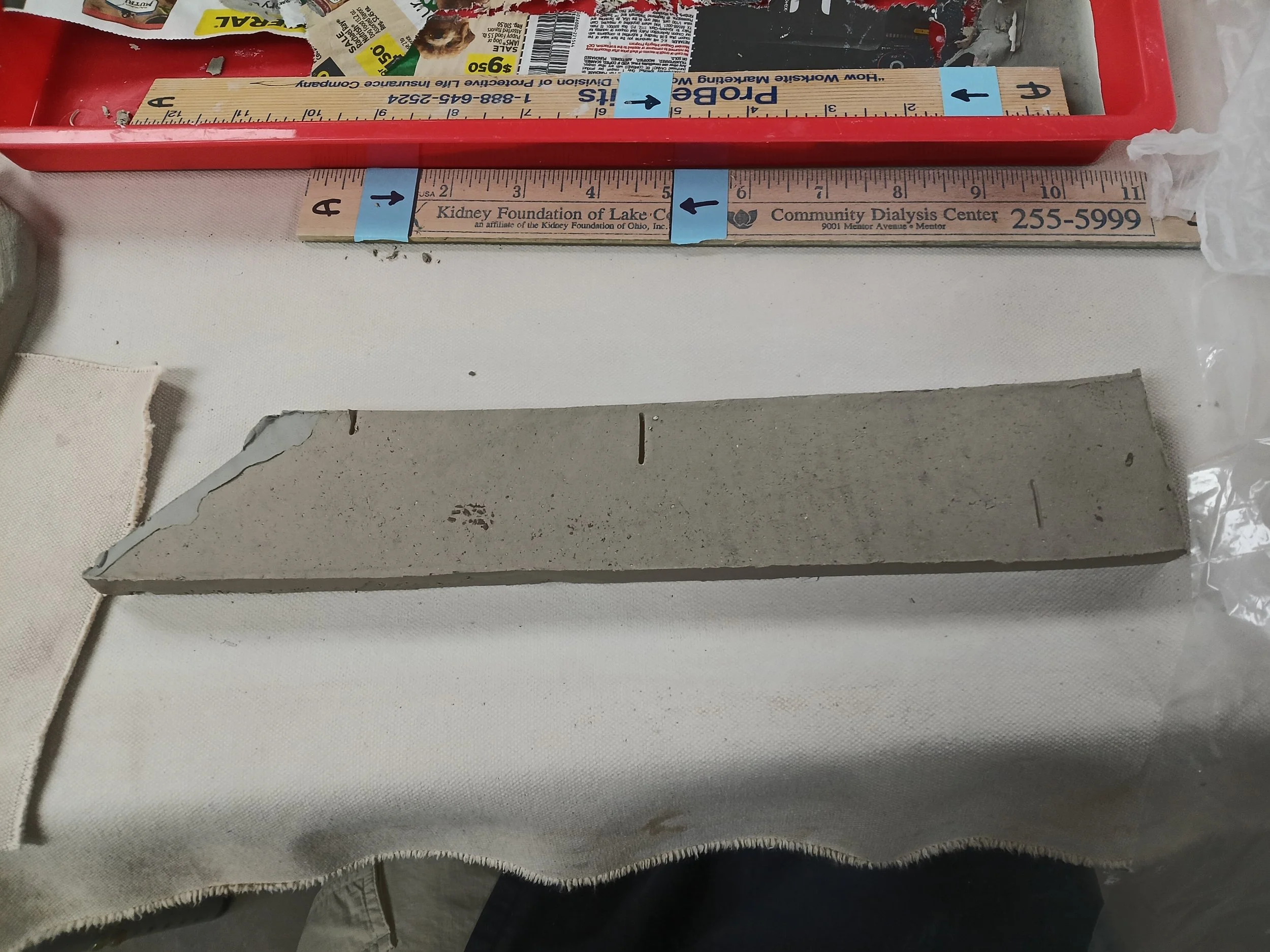 Next carefully remove the bar from the tray onto the canvas. Do not pick up by the two ends. Flip it on the edge and then try to distribute your fingers/hands underneath it. Place in on a little piece of canvas so you can slide it around without picking it up if you need. It may even be best to put it directly on the board it will be drying on to avoid moving it too much and breaking the bar by picking it up once it is carve.